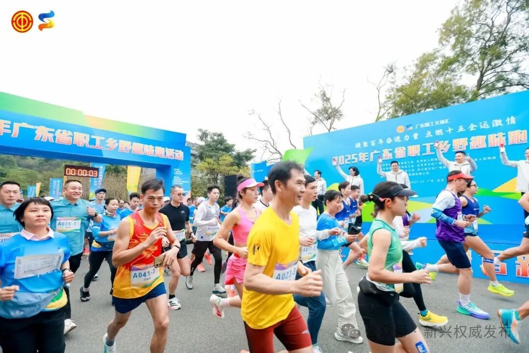 活动在庄严的国歌声中拉开帷幕。广东省总工会党组书记、常务副主席温文星赴云浮调研并出席活动。云浮市委副书记、市长李庆新,云浮市政协主席梁丽娴,广东省直机关工委副书记吕元元,广东省总工会党组成员、挂职副主席郑辉,云浮市委常委、副市长邱泽军,云浮市人大常委会副主任、市总工会主席江洪灿,新兴县委书记陈哲江,县委副书记、县长赖鉴铭,以及省、市、县相关负责人共同参加起跑仪式。温文星等领导嘉宾一同为比赛鸣笛发令,随后和职工选手一同奔跑。